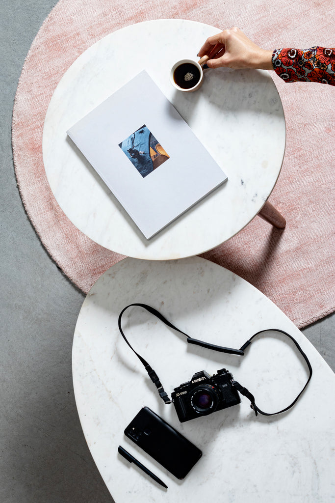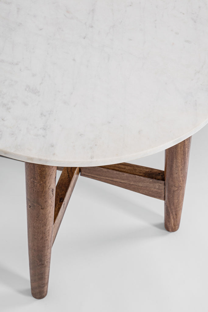 Βοηθητικό τραπέζι με επιφάνεια από λευκό μάρμαρο και πόδια από μασίφ ξύλο ακακίας*.