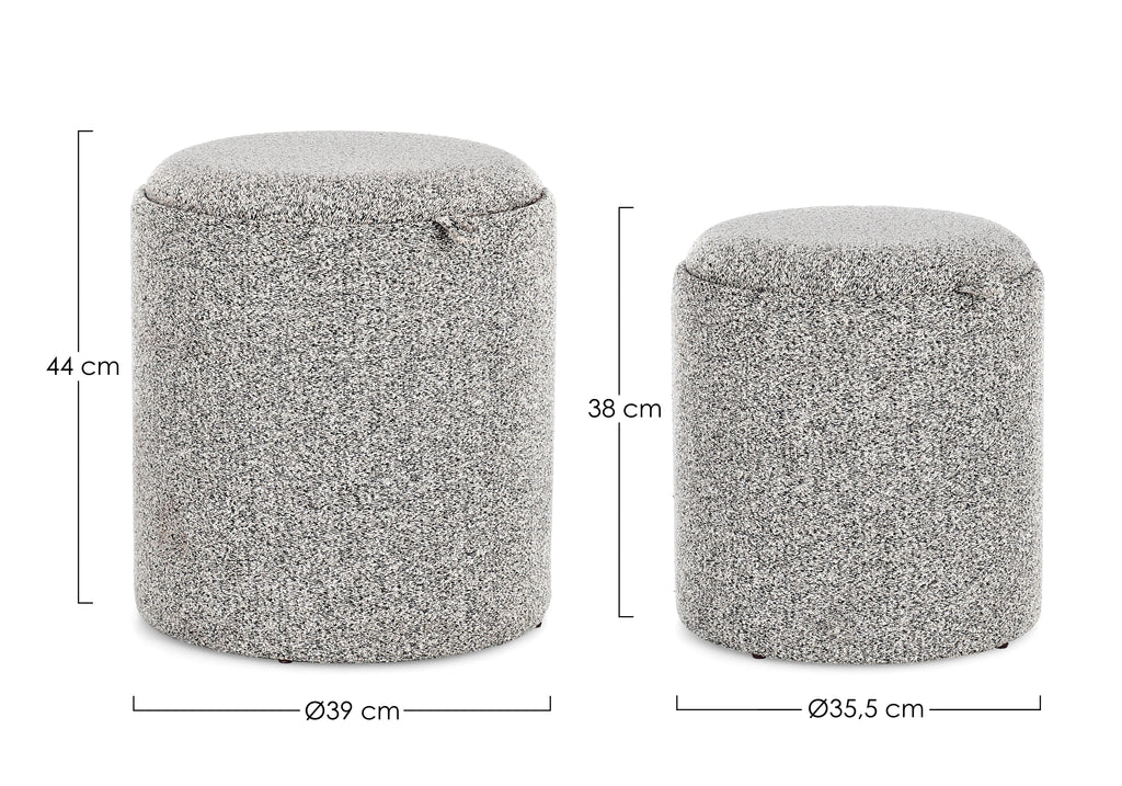 Bizzotto Sasha Σκαμπώ Με Αποθηκευτικό Χώρο Ανοιχτό Γκρι Σετ 2 Τμχ Ø39x44 Κωδικός: 0721691