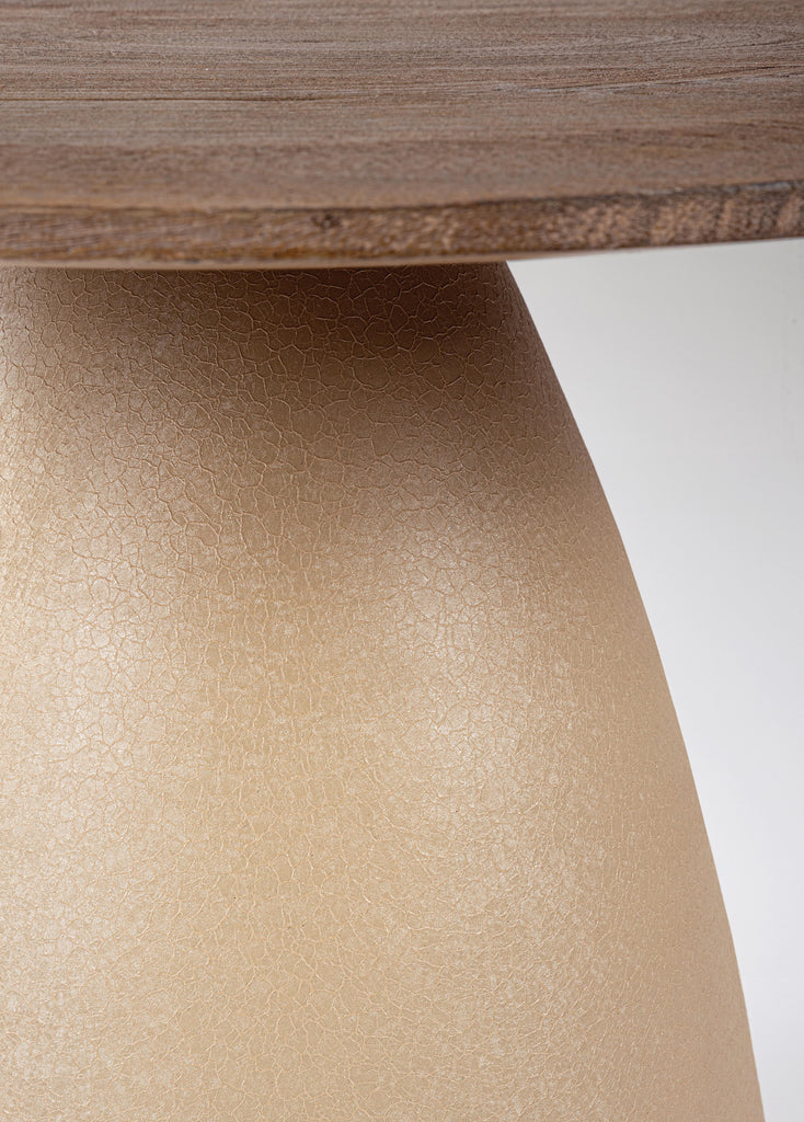 Η επιφάνειά του είναι κατασκευασμένη από μασίφ ξύλο* mango σε αποχρώσεις του καφέ.