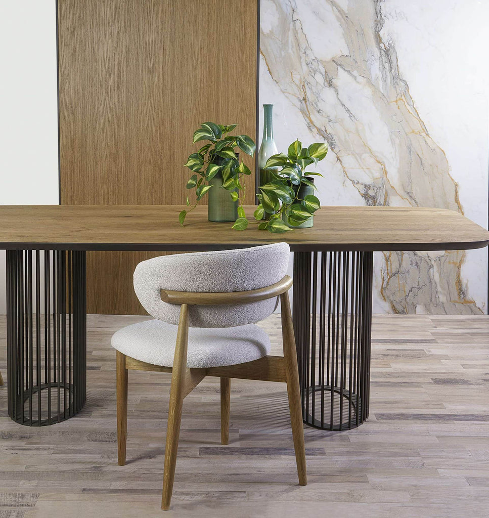 Η καρέκλα τραπεζαρίας TENDER ξεχωρίζει για το κομψό design και την αναπαυτική της πλάτη. Με στιβαρή βάση από ξύλο δρυς και επένδυση με ύφασμα επιλογής, αποτελεί ιδανική πρόταση για κάθε μοντέρνα τραπεζαρία.