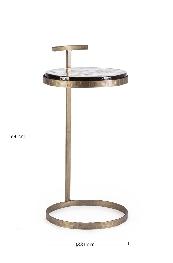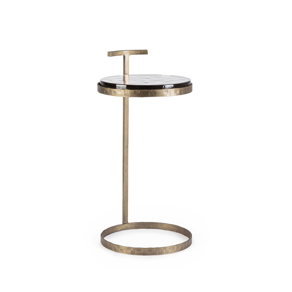 Βοηθητικό τραπέζι από σφυρήλατο μέταλλο στο χρώμα του ορείχαλκου, με παλαιωμένο φινίρισμα.